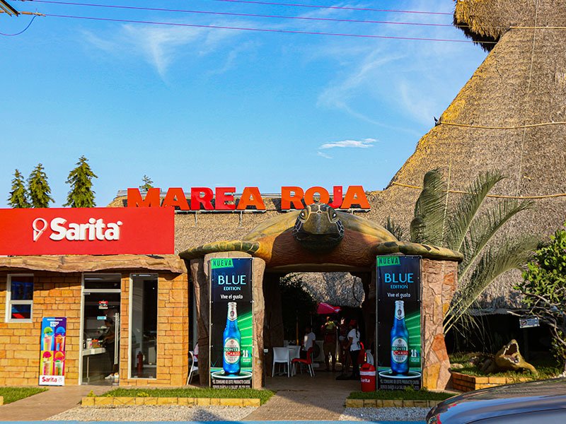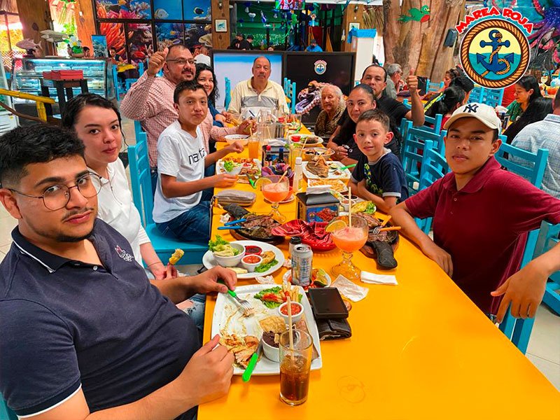 Al llegar al lugar te recibirá una plaza temática con diferentes opciones de comida y como principal atracción Marea Roja un rancho con aproximadamente 20 metros de altura con un ambiente cálido y acogedor. La decoración marina te transportará a las profundidades del mar, creando una experiencia única. El personal amable y atento estará listo para atenderte y asegurarse de que tengas una experiencia gastronómica inolvidable.